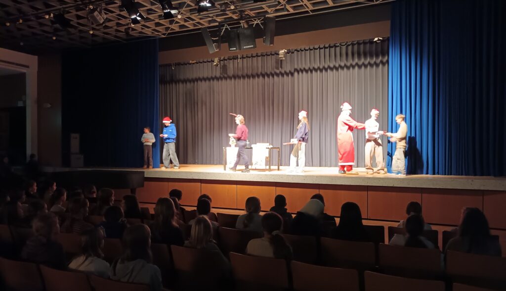 Während der Wartezeit gab es dann noch eine Überraschung. Plötzlich stand der Nikolaus mit seinen Helferinnen und Helfern in der Aula und konnte noch einige Nikoläuse verteilen. Dann aber warteten alle gespannt auf das wichtigste Ergebnis…. Wer hatte die Jury in diesem Jahr am meisten überzeugen können?