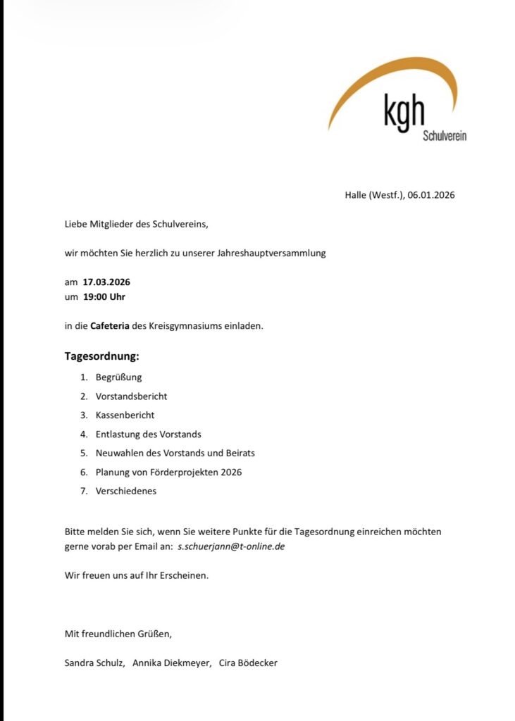 am 21.11. möchten wir eine neue Tradition ins Leben rufen: den KGH – Weihnachtsbasar. Details entnehmen Sie bitte dem folgenden Dokument: Schulverein_Weihnachtsbasar
